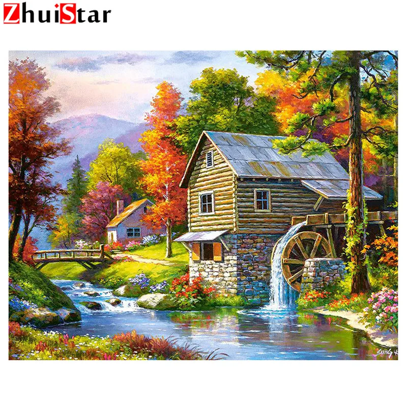 Алмазная картина деревенский дом пейзаж 5D квадратный на полимерной основе Стразы для вышивки Пейзаж Вышивка Рукоделие DIY XY1