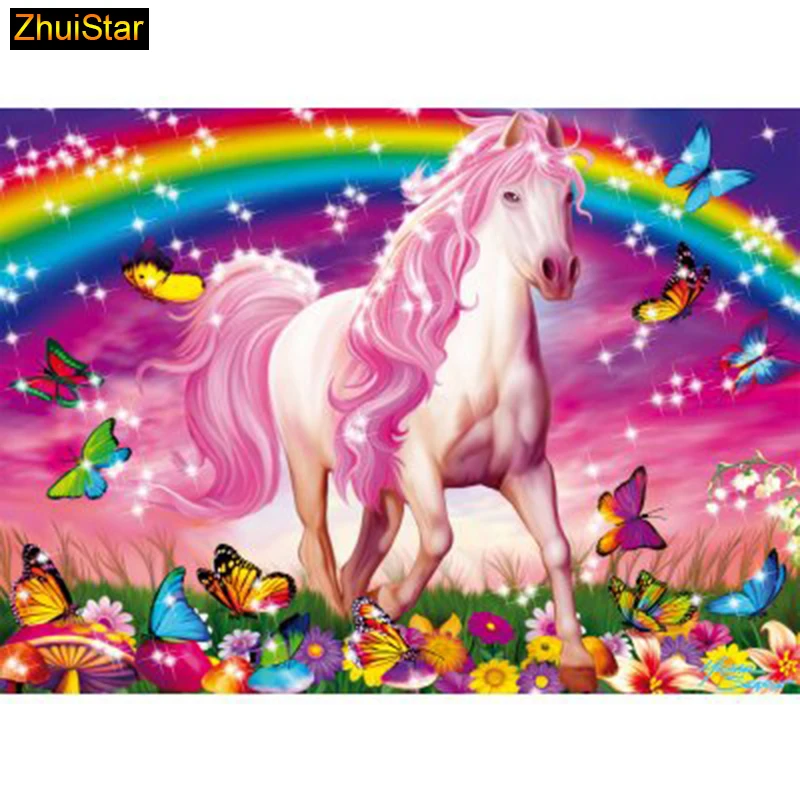 5D DIY Алмазная картина вышивка крестиком ЛОШАДЬ Бабочка Радуга полный квадратный вышивка бисером, Вышивание горный хрусталь мозаика ремесла