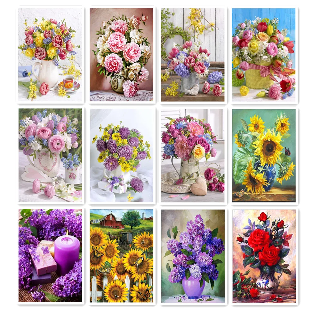5D DIY diamond painting flower vase cross stitch full circle diamond embroidery mosaic diamond home decoration