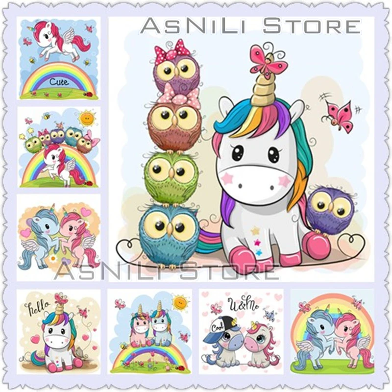 Полный квадратный/круглый кристалл бриллиантовой вышивки мозаика картина мультфильм Единорог DIY алмазная живопись вышивка крестиком детс...