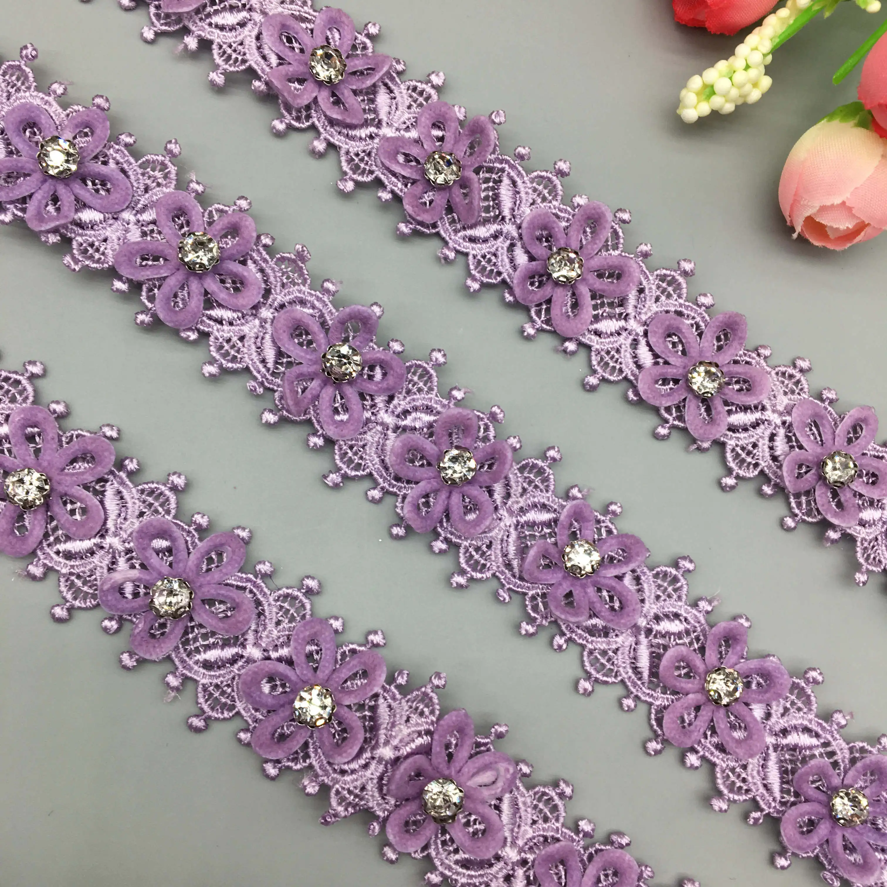 2 ярда фиолетовый жемчуг 3D цветок кружевной край отделка Лента ткань вышитая аппликация Вязание Шитье ремесло свадебное платье одежда