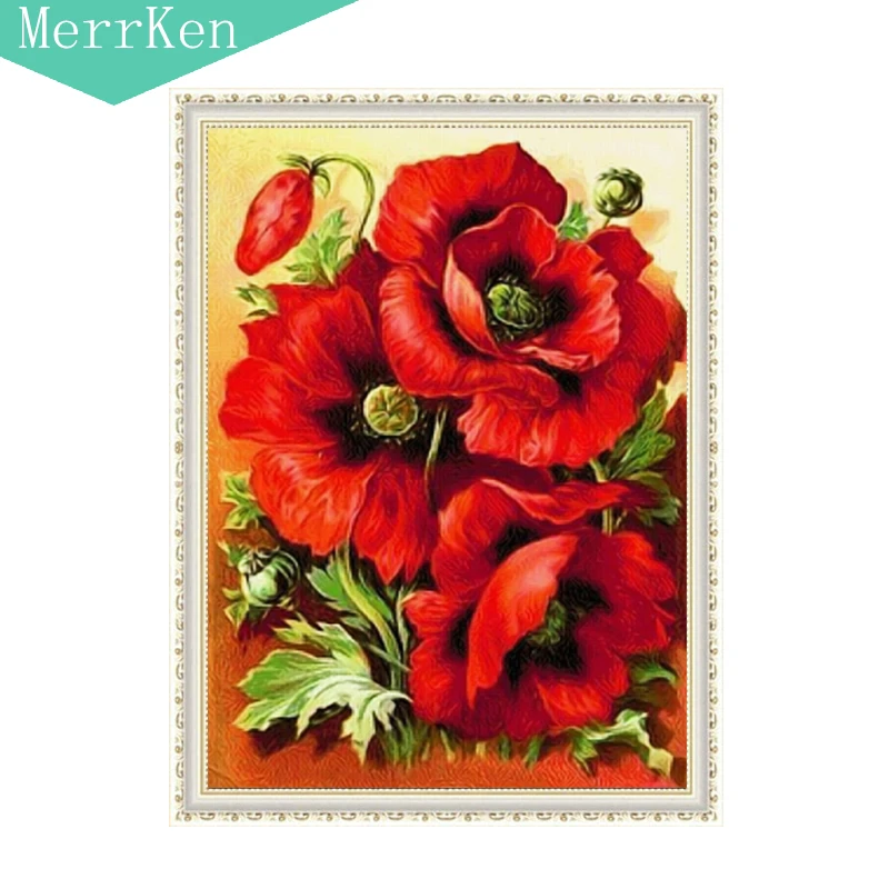 MerrKen Diy алмазная живопись Маки из полимера, круглая, Алмазная вышивка Алмазная мозаика украшение дома живопись 30*40 см