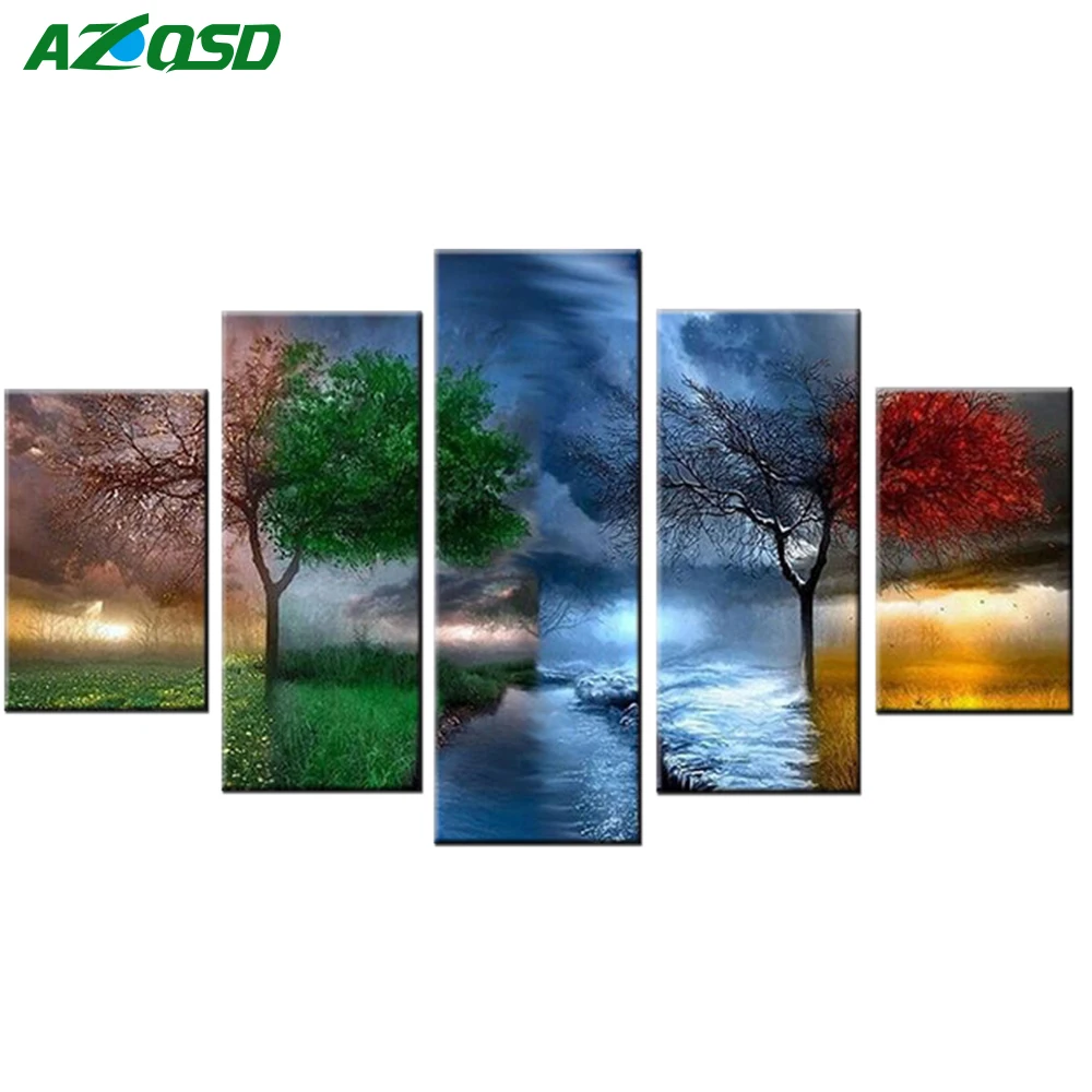 Azqsd алмазная живопись вышивка крестиком пейзаж полный квадратный дрель 5D алмазная вышивка сезоны деревья украшения дома 5 шт./компл./компл.