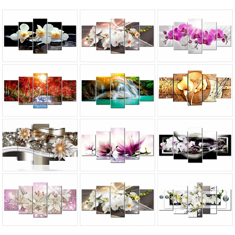 Huacan алмазов картина 5 шт./компл. цветы полная квадратная Алмазная Вышивка Мульти-рисунок «сделай сам» для дома украшения