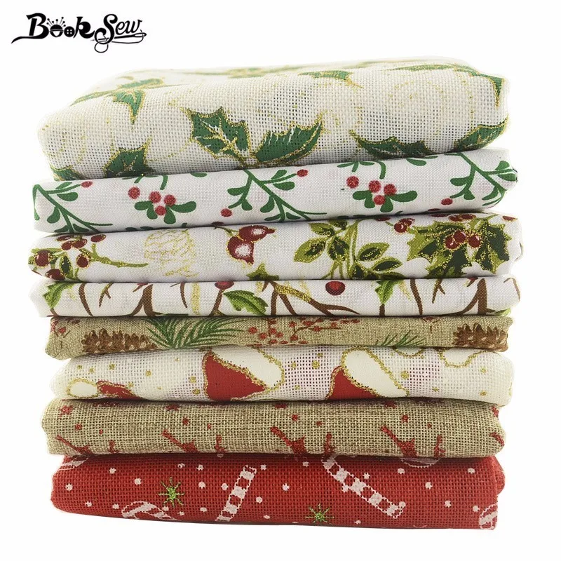 Booksew Лен Ткань 8 шт./лот 45 см x 50 см нарезанные Комплект Новогодние товары Стиль Жир квартал для Вышивание Украшение Craft сумка кукла чулок