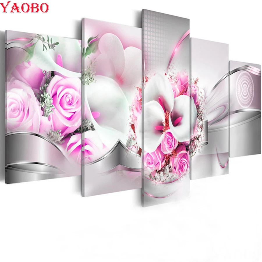 Полный квадратный круглый сверло 5D DIY алмазная живопись абстракция Розовые розы Вышивка крестиком наборы 5 шт. вышивка Алмазная мозаика рас...