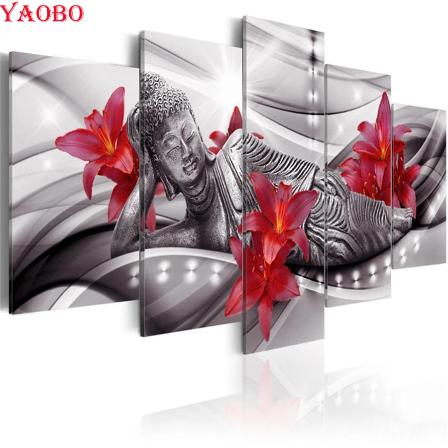 DIY алмазная живопись лежащий Будда и цветы 3d вышивка крестиком 5 шт. Алмазная вышивка Стразы Живопись Мозаика Настенный декор