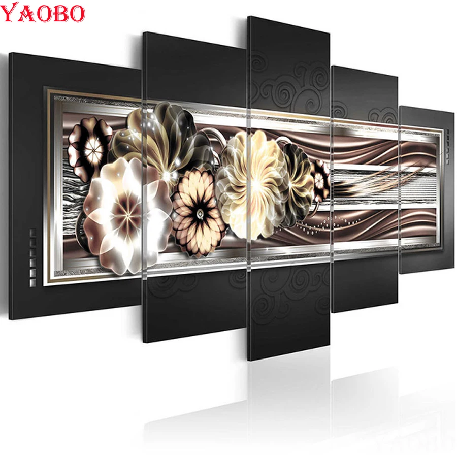 5D DIY алмазная живопись абстрактный цветок Алмазная Вышивка Бисер 5 шт. вышивка крестиком Мозаика узор горный хрусталь домашний декор