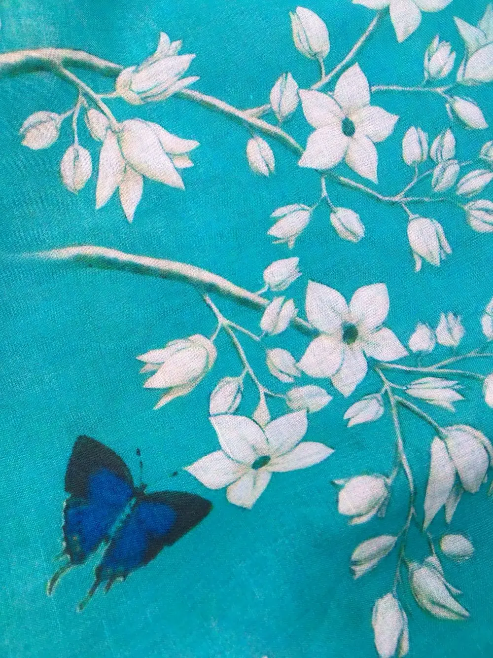 Высококачественное натуральное платье в стиле пэтчворк, свежая синяя бабочка, цифровая печать, материал, высококачественное платье, cheongsam, ткань