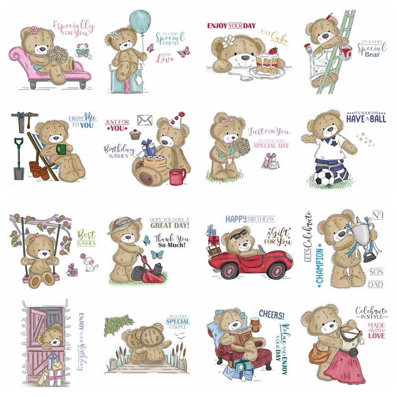 16 шт./компл. с принтом любимого мишки, 3x4 дюйма прозрачные наклейки для DIY Скрапбукинг ручной работы Бумага карточки прозрачные Stempels Силиконовое уплотнение Новый