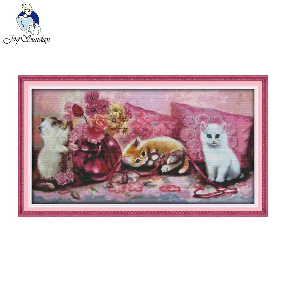 Радость воскресенье звериный стиль три Литтен котята довольно вышивки крестом рисунками рождественские комплекты craft подарок для украшени...