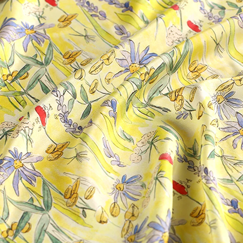110 см Ширина 16 мм Дейзи печати желтый 100% натурального шелка крепдешин ткань для женские летние платья блузка Швейные DIY-AF652