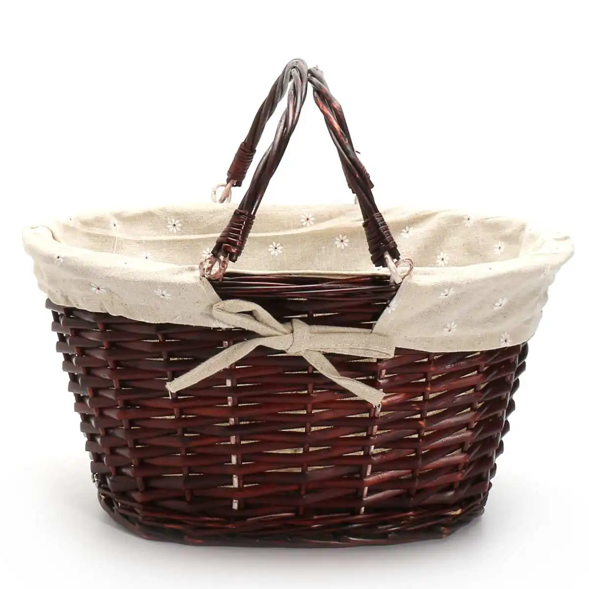 Практичная плетеная корзина ручной работы плетеная корзина для кемпинга, пикника корзина для хранения покупок и ручка деревянная цветная плетеная корзина для пикника