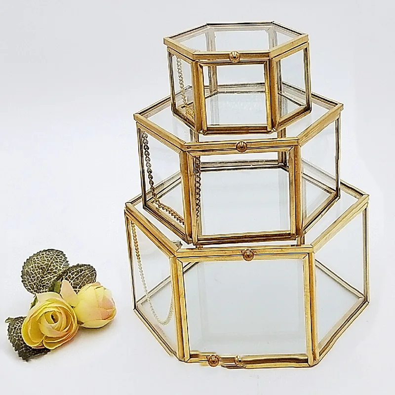 Коробка для хранения винтажная Геометрическая стеклянная шкатулка для украшений ретро серьги кольцо цветок растения коробка для демонстр...