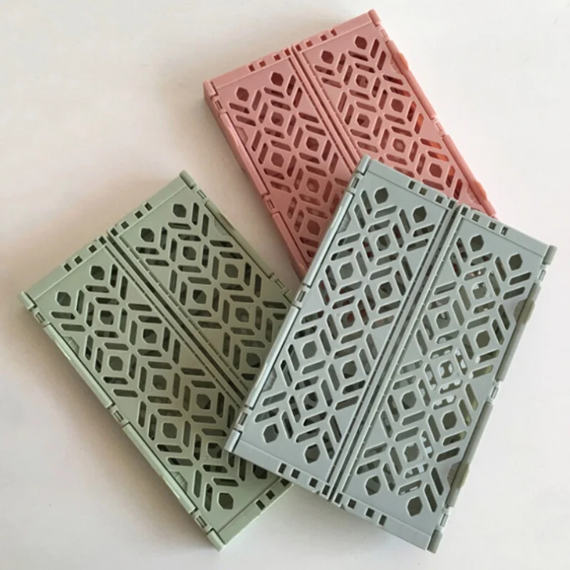 Бытовая пластиковая синяя корзина складная Штабелируемая настольная корзина для хранения для ванной комнаты и спальни