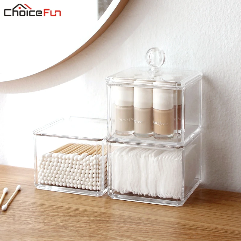 CHOICEFUN Cube дома небольшой прозрачный дисплей организовать косметический макияж составляют ватные палочки акриловая коробка для хранения