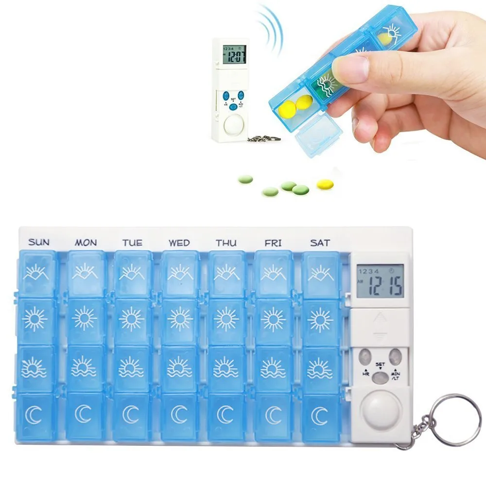 Умный диспенсер для лекарства на неделю с будильником Гладкий AM/PM 2/4 a день прозрачная коробка для таблеток с 7 дневные рабочие контейнеры для путешествий Органайзер для таблеток