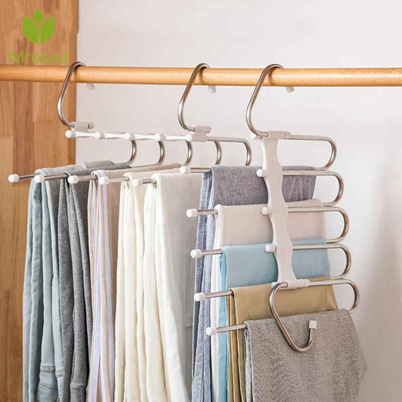 5 in 1 Pant rack Trousers shelves Stainless Steel Clothes Hangers Multi-functional Telescopic Folding Wardrobe Towel Storage