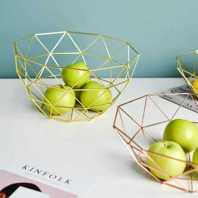 Новые корзины для хранения в скандинавском стиле из Золотого Металла, художественная корзина для конфет и фруктов для гостиной, Настольная корзина для кухни, Органайзер