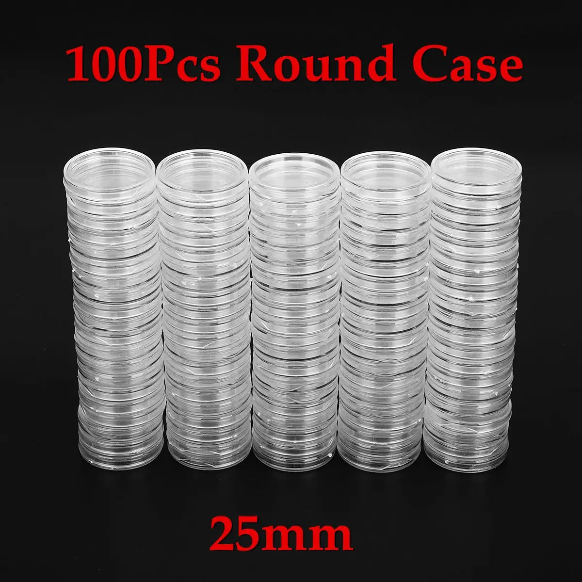 25 мм 100 шт./лот монета держатель монет коробка для хранения прозрачный круглый корпус пластик капсула для хранения витринный футляр-органай...