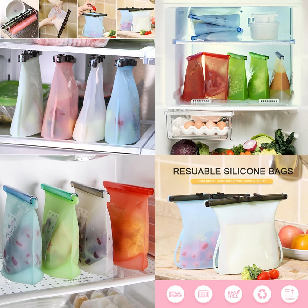 New Reusable Silicone Food Storage Bags Zip-lock Freezer Cooking Fresh Bag Upgrade Seal Leakproof Container Liquid Snack Storage