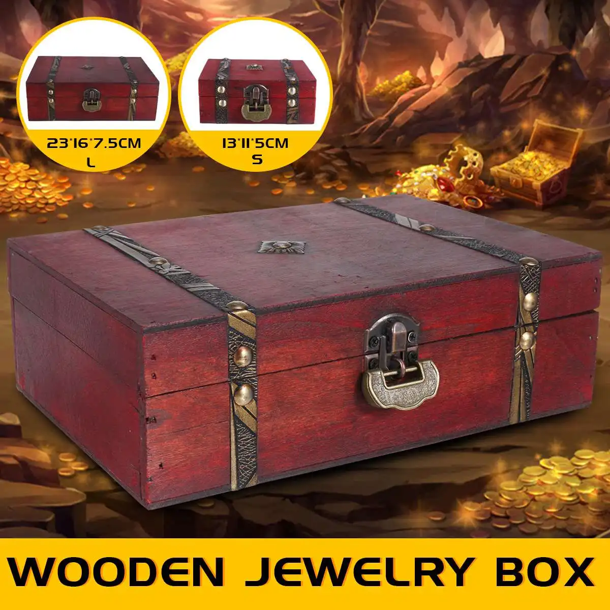 Винтажный сундук с сокровищами, деревянная коробка для хранения ювелирных изделий с замком, античный стиль, чехол-органайзер, деревянная коробка для хранения в доме