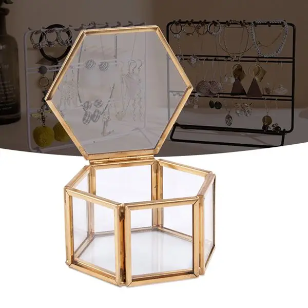 SNNY-геометрический прозрачный стеклянная шкатулка для украшений Органайзер-держатель ювелирных изделий Настольный суккулентные растения ...