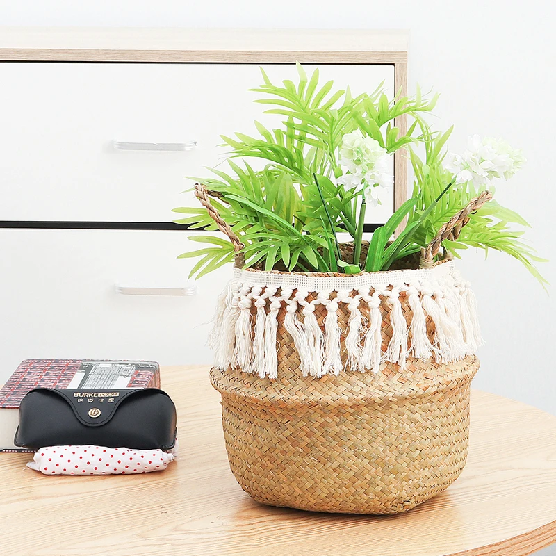 Ручная работа, домашний декор, плетеная корзина с кисточками макраме, водоросли, садовый цветочный горшок, складная корзина для белья, плете...