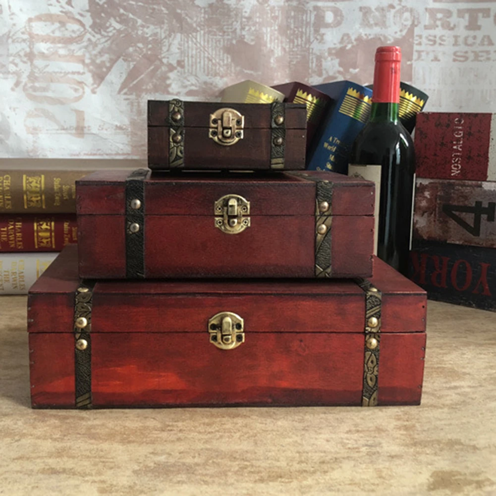 Винтажная деревянная коробка для хранения сундука с замком, чехол-органайзер, складная Мини Маленькая деревянная коробка для домашнего дек...