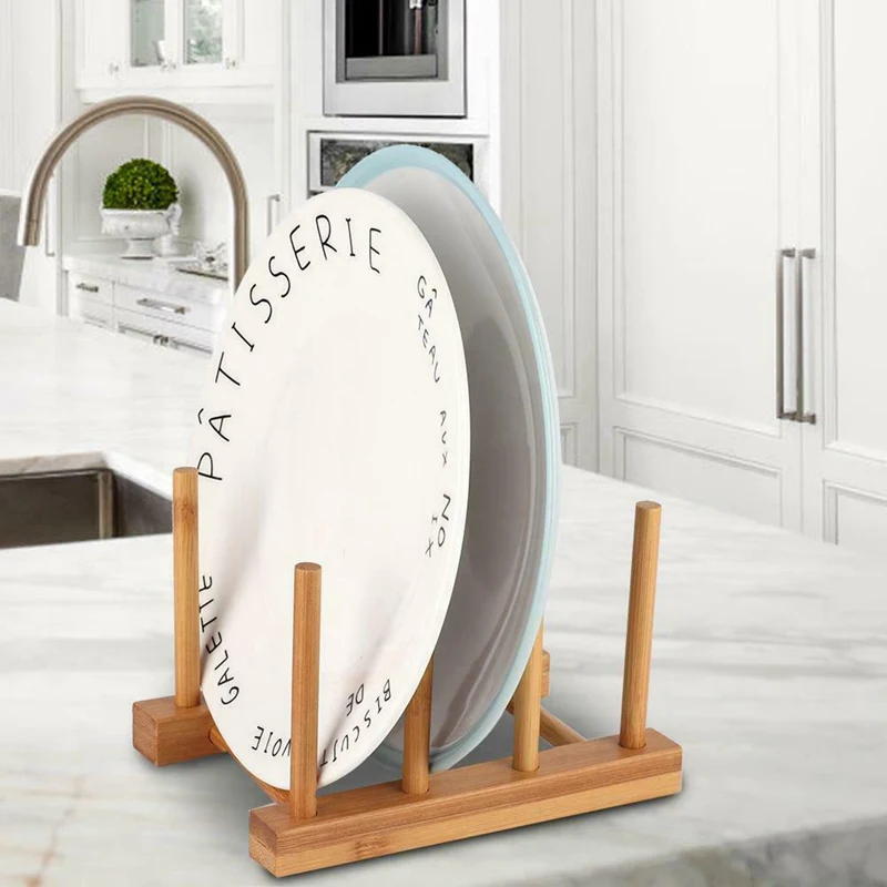 Универсальный бамбуковый деревянный стеллаж для посуды 4 сетки тарелки чаша чашка горшок крышка Держатель разделочной доски стенд кухонны...