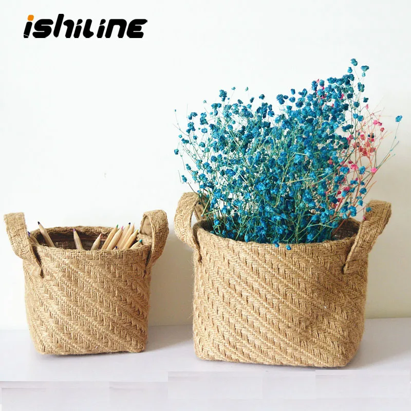 Плетеная Джутовая Ткань цветочный горшок корзина для хранения хлопок лен смешанный Настольный ящик для хранения детские игрушки разное ор...
