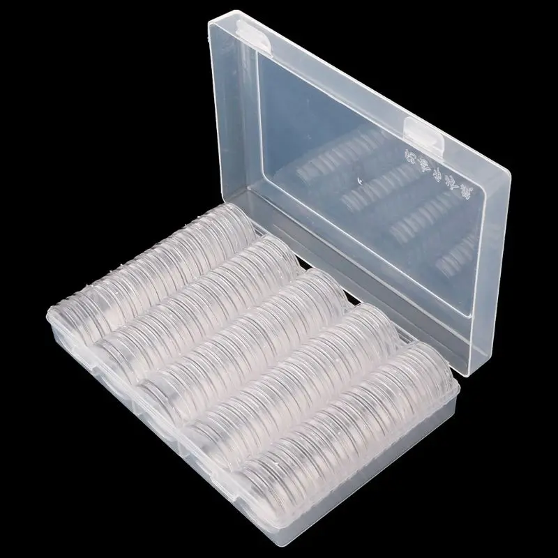 Прямоугольная прозрачная пластиковая коробка для хранения, чехол для коллекции, защита для 100 шт, 27 мм/30 мм, держатель для капсулы для монет и...