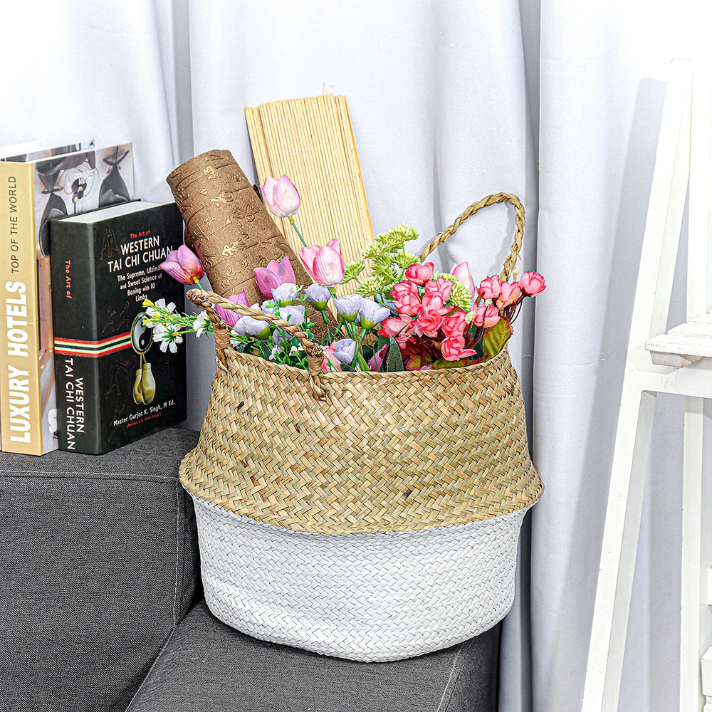 Бамбуковые корзины для хранения бытовой складного природного водоросли Плетеный горшок для хранения в стиле пэчворк садовая Цветочная ваз...