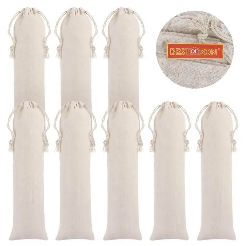 BESTONZON 10 шт., сумка из хлопка и льна, соломенный чехол для переноски из нержавеющей стали, соломинки, столовые приборы, вилка, ложка для хранения