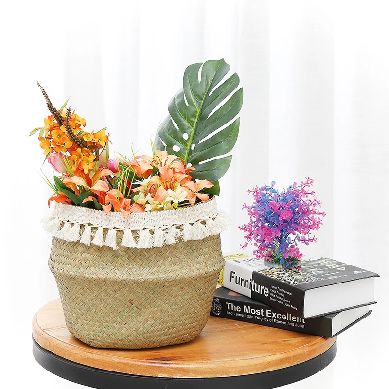 Белая плетеная корзина с кисточками складные натуральные водоросли тканые корзины, для хранения садового цветочного горшка для хранения п...