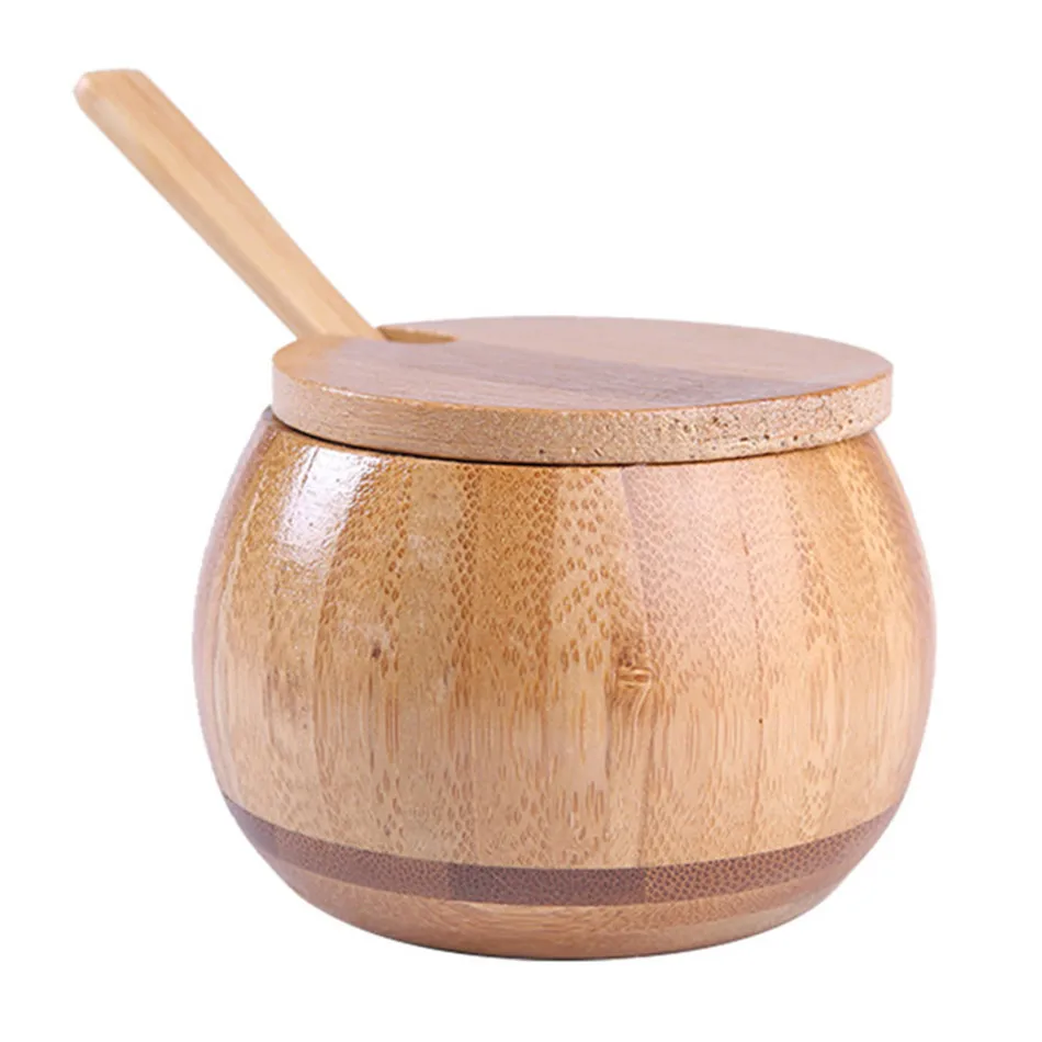 SEAAN деревянная банка для специй Приправа банка с крышкой Ложка кухонный инструмент ящик для хранения соли натуральный бак для специй сахарница