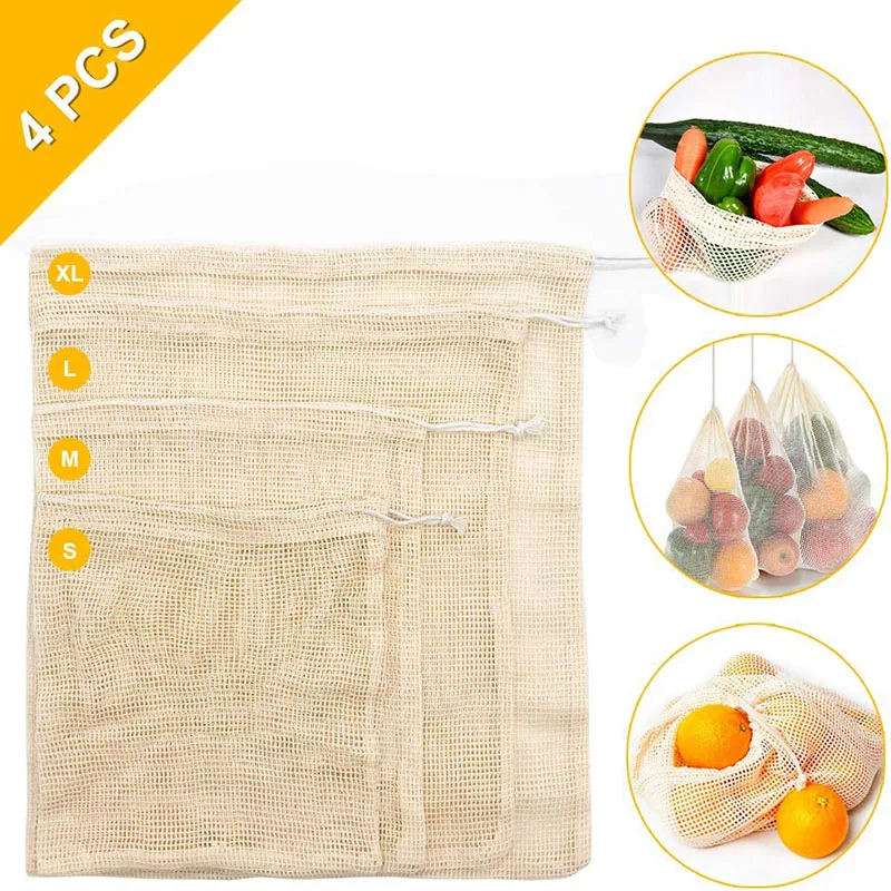 4 шт. Reausable экологические сумки набор для фруктов овощей нулевой отходов сетки популярные хлопковые экологически чистые биоразлагаемые про...