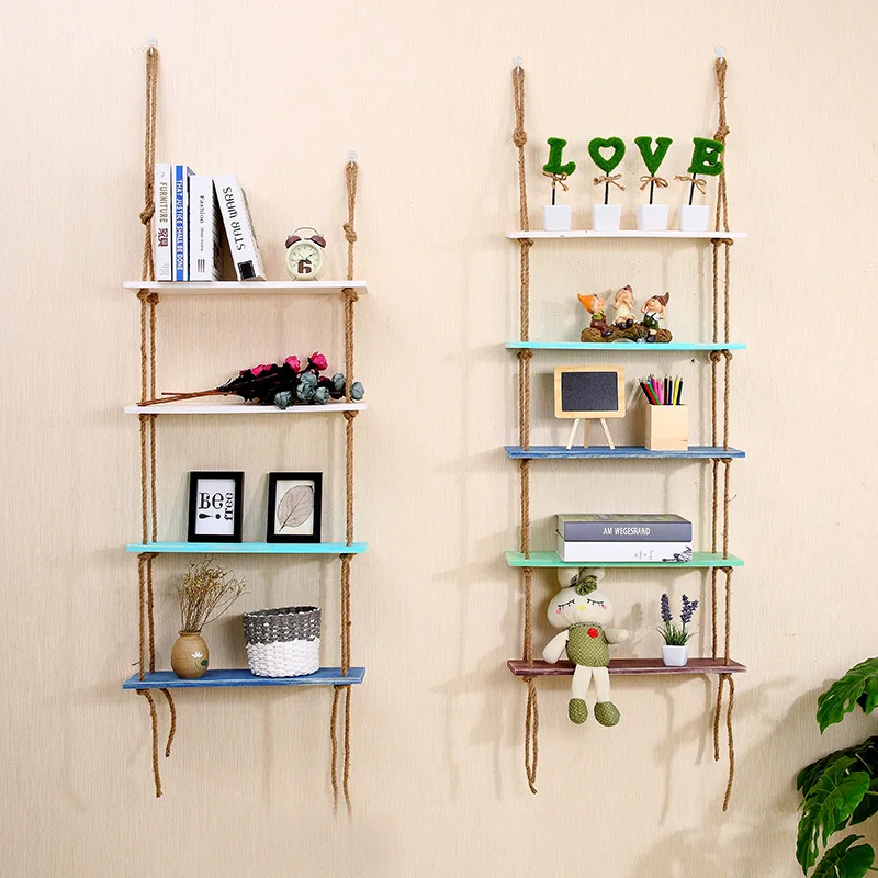 Nordic деревянная подвесная полка качелей плавающие полки с многослойным покрытием Бесплатная Комбинации джутовая веревка стены DIY декоратив...