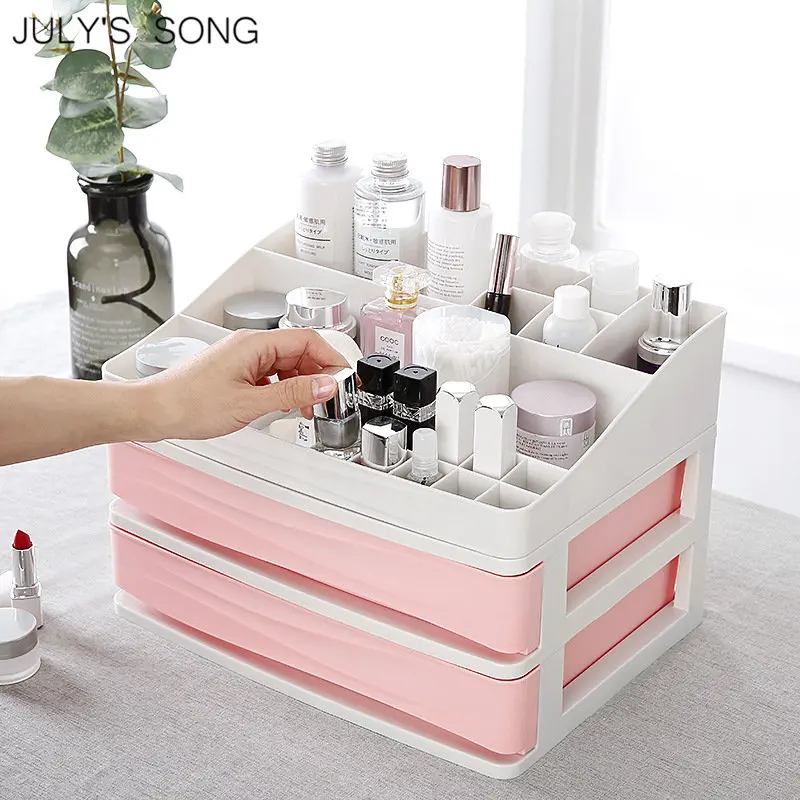 JULY'S песня Пластик ящик для косметики макияж хранение Органайзер коробка контейнер ногтей шкатулка Настольный держатель Sundry чехол для хран...