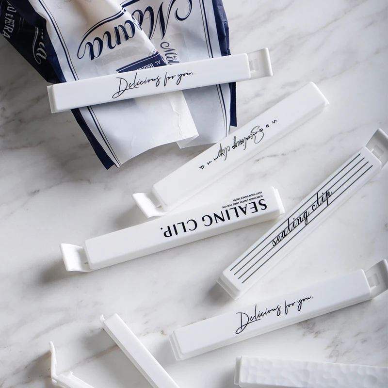Портативные зажимы для мешков, пластиковые Кухонные зажимы для хранения еды, закуски, бытовые уплотнения, черные буквы, закрытые клип-герме...