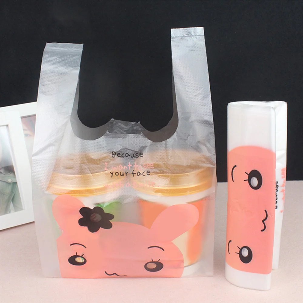 100 шт мультфильм смайлик жилет мешок удобный Розничный супермаркет сумки для покупок пластиковые упаковки еды пакеты с ручками