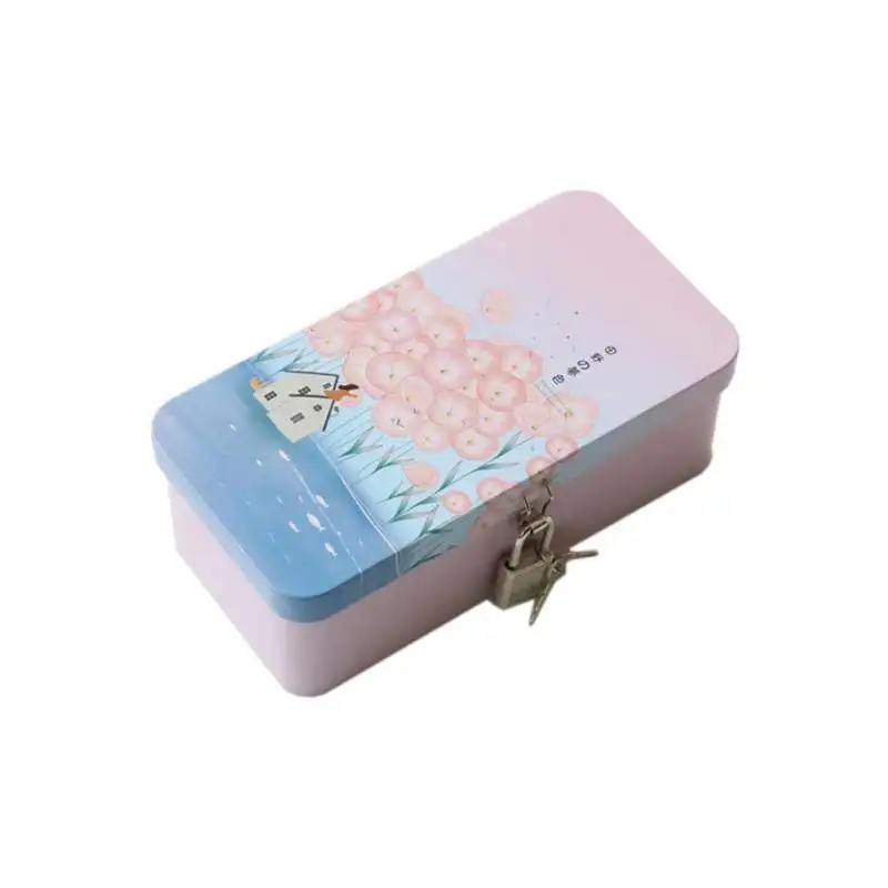 Красивый практический двойной слой жестяная коробка настольная шкатулка с отделкой кованого железа пенал с замком