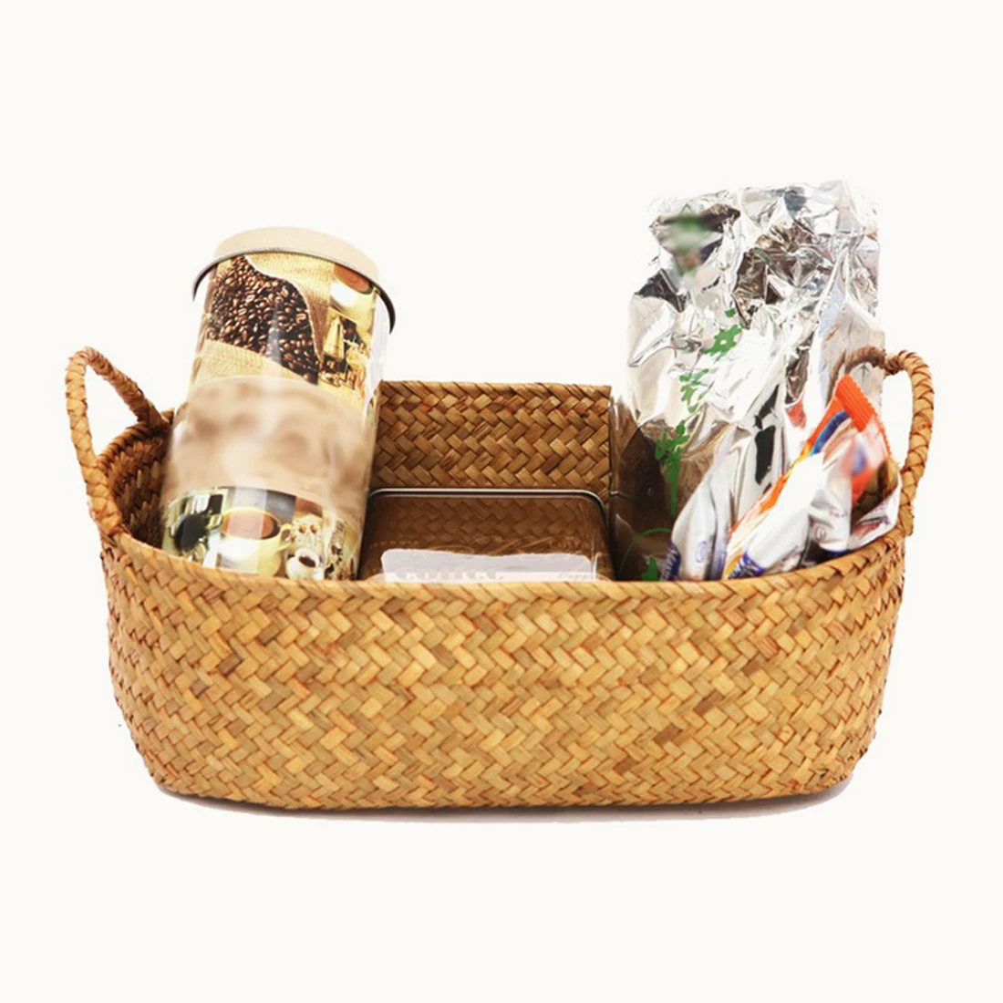 Натуральная большая плетеная корзина из соломы, плетеная корзина для домашнего стола, полотенца для фруктового хлеба, маленький Кухонный Контейнер для хранения, набор