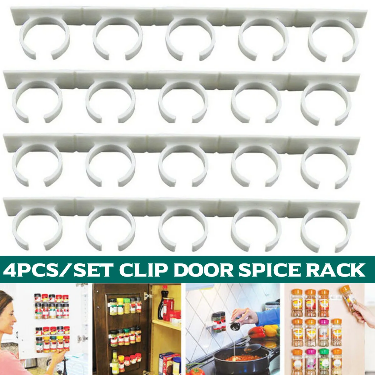 4 шт./компл. настенное крепление ингредиент бутылок специй стеллаж для выставки товаров Пластик вешалкки, 5 шкаф Кухня двери шкафа, крючки, станок и банки для специй держатель