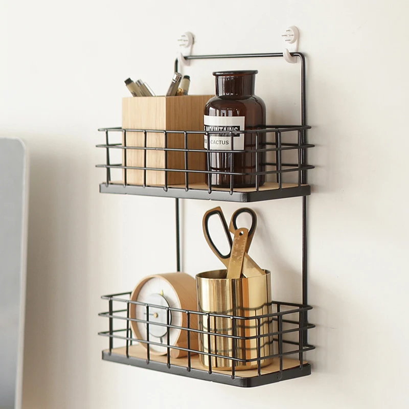 Универсальное настенное крепление железная стойка для хранения двойной кухонный-слой бутылка для приправ макияж полка металлическая ванн...