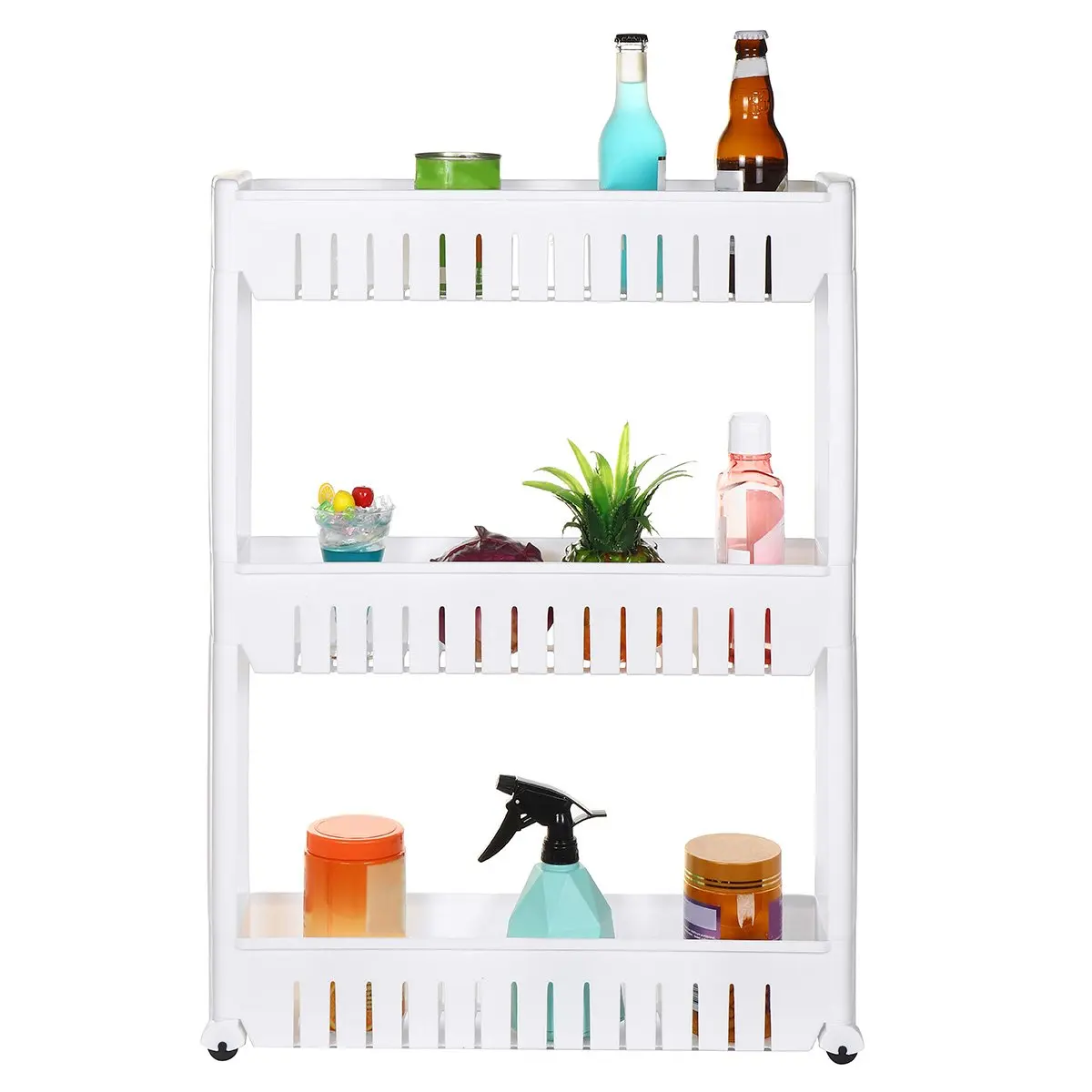 Пластиковый многоцелевой кухонный стеллаж для хранения, боковая полка для холодильника, съемный с четырьмя колесами, органайзер для ванной...