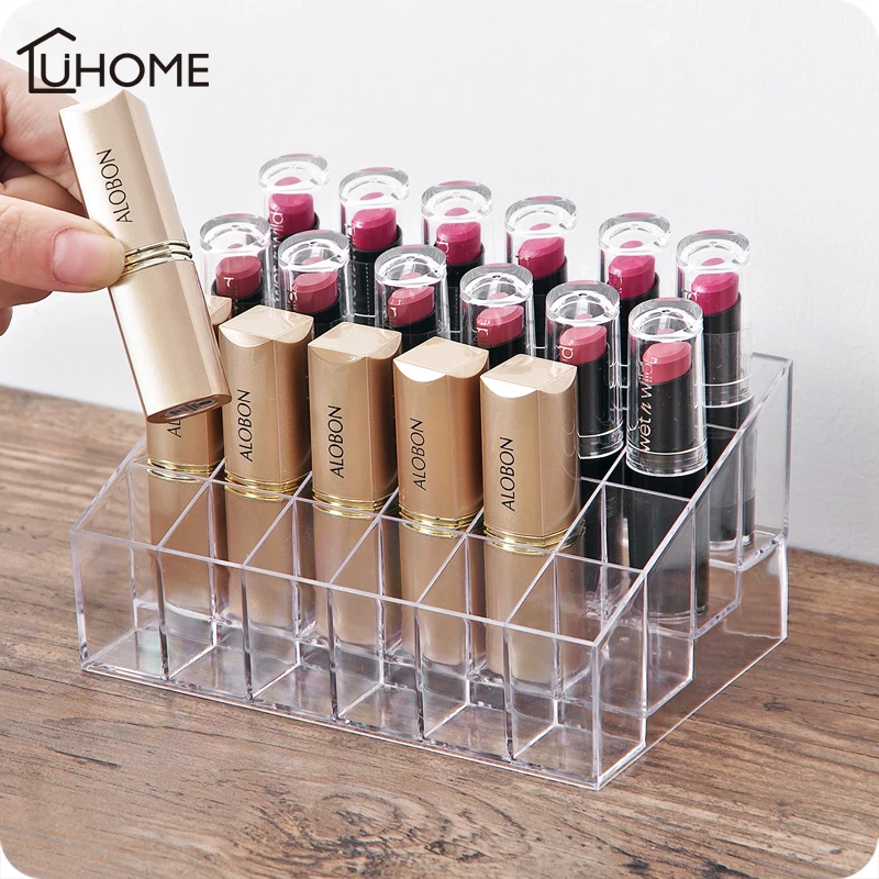 24 Сетки трапециевидный прозрачный акриловый косметический дисплей подставка для помады косметичка держатель ювелирных изделий полирован...