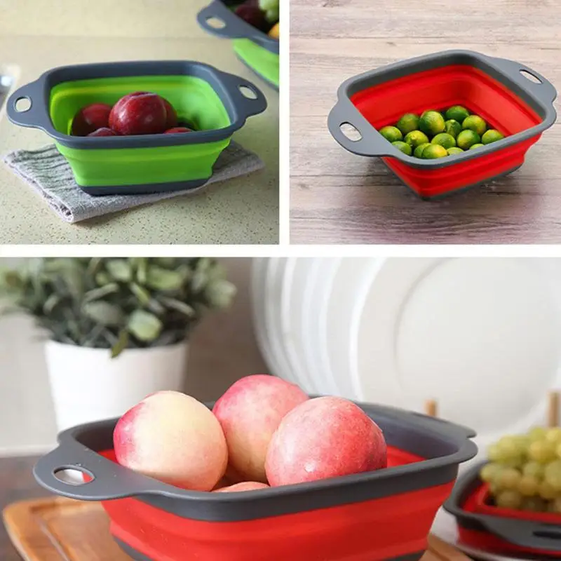 2 шт./компл. складная коробка для фруктов и овощей, стиральная корзинный фильтр Portabl силиконовый дуршлаг складной осушитель с ручкой Кухня инструмент