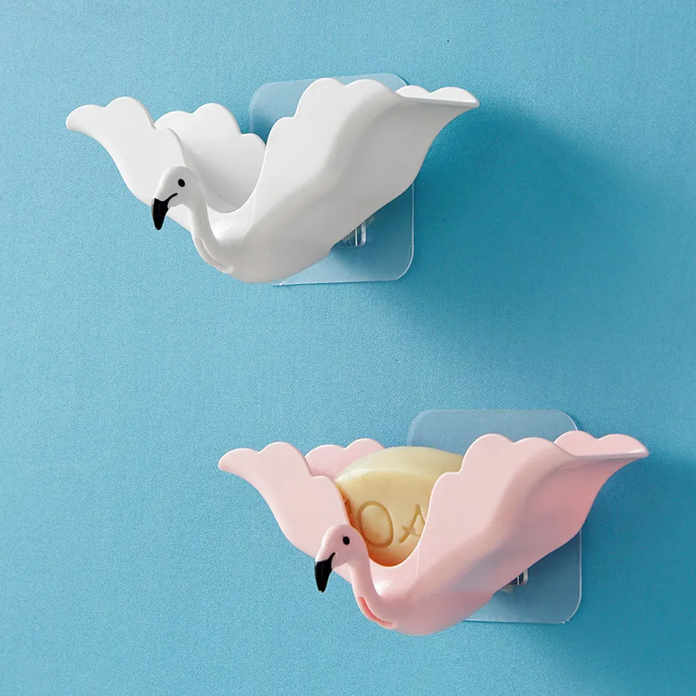 Фламинго дизайн мыльница держать мыло сухой чистой ванной Душ мыльница пластиковая клейкая сливная губка держатель белый