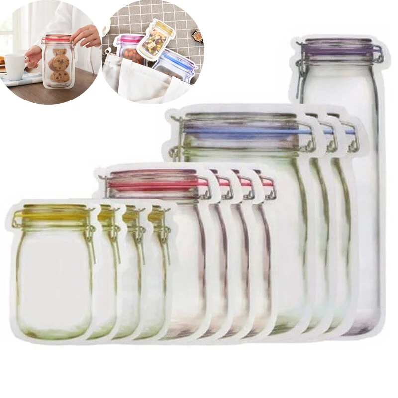 Многоразовые сумки на молнии Mason Jar, многоразовые пакеты для хранения еды, герметичные сэндвич-пакеты для хранения продуктов для путешествий, упаковка для свежих продуктов, печенья
